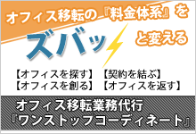 オフィス移転の『オフィスを探す』『契約を結ぶ』『オフィスを創る』『オフィスを返す』をワンストップコーディネートでお手伝いするオフィス移転業務代行の会社です。