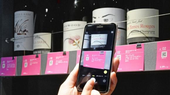 店内wineショップ棚は東京トップクラス、価格タグで検索・情報確認も簡単。